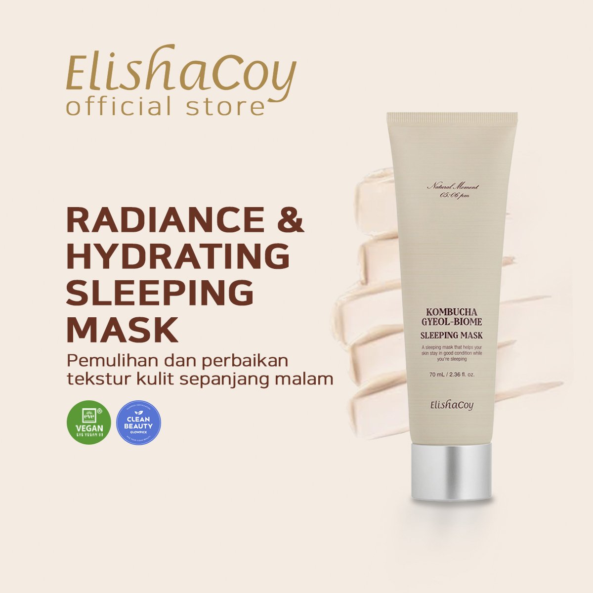 Elishacoy Kombucha Gyeol Biome Sleeping Mask adalah masker tidur vegan solusi ideal yang bekerja sepanjang malam untuk memulihkan dan memperbaiki tekstur kulit yang tidak merata dan memiliki ketidakseimbangan pH karena terpapar debu halus, sinar UV dan perubahan suhu. Mengandung 10% ekstrak Kombucha dari pulau Jeju, masker tidur Elishacoy menjaga kulit tetap sehat bercahaya